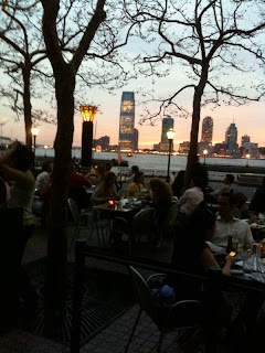 Last night was a magically-breezy evening in Battery Park City, (pictured below at sunset), the perfect temperature for dinner outside on the Hudson, the occasion being a 31st birthday party for my great friend Jason VanOra, a psychology professor at Kingsborough Community College. Over guacamole and chips, chicken quesadillas, and a chocolate brownie sundae, Jason, who looks about 22, made me feel a bit old, as I have a belt older than him! But I was very happy to celebrate, together with our close friends Peg and Beth.