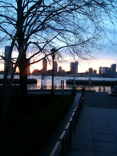 Last night, with balmy spring temperatures soaring to nearly 80 degrees, I had to take advantage of the sunset on the Hudson, pictured below, by having dinner outdoors.